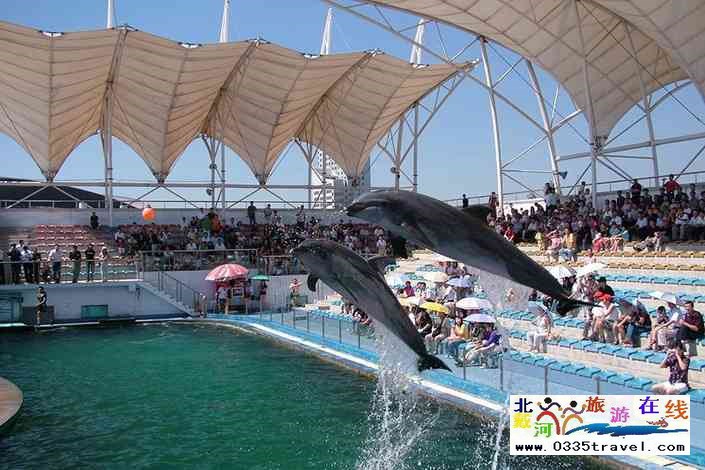 秦皇島新澳海底世界 坐落于國(guó)家級(jí)名勝城市秦皇島,南鄰渤海,北靠燕山,依山傍海,是秦皇島海濱風(fēng)景線上的一顆璀璨明珠。它是由中國(guó)、澳大利亞合資興建,集吃、行、游、購(gòu)、娛為一體,以海洋公園為主題的大型開(kāi)放式旅游項(xiàng)目??偼顿Y2.3億元人民幣,建筑面積2萬(wàn)平方米,總儲(chǔ)水量6500多噸,熱帶魚(yú)類千余種。主要由海底世界水族館、海豚表演館、酒店休閑餐飲等幾部分組成,是國(guó)家首批命名的4A級(jí)景區(qū),中國(guó)旅游知名品牌,國(guó)家級(jí)青少年科普教育基地。海底世界每年接待中外游客約百萬(wàn)人次,得到了黨和國(guó)家領(lǐng)導(dǎo)人的高度重視。原政治局委員,國(guó)務(wù)院總理及全國(guó)人大副委員長(zhǎng)等40多位黨和國(guó)家領(lǐng)導(dǎo)人以及老一輩革命家都曾到此參觀。